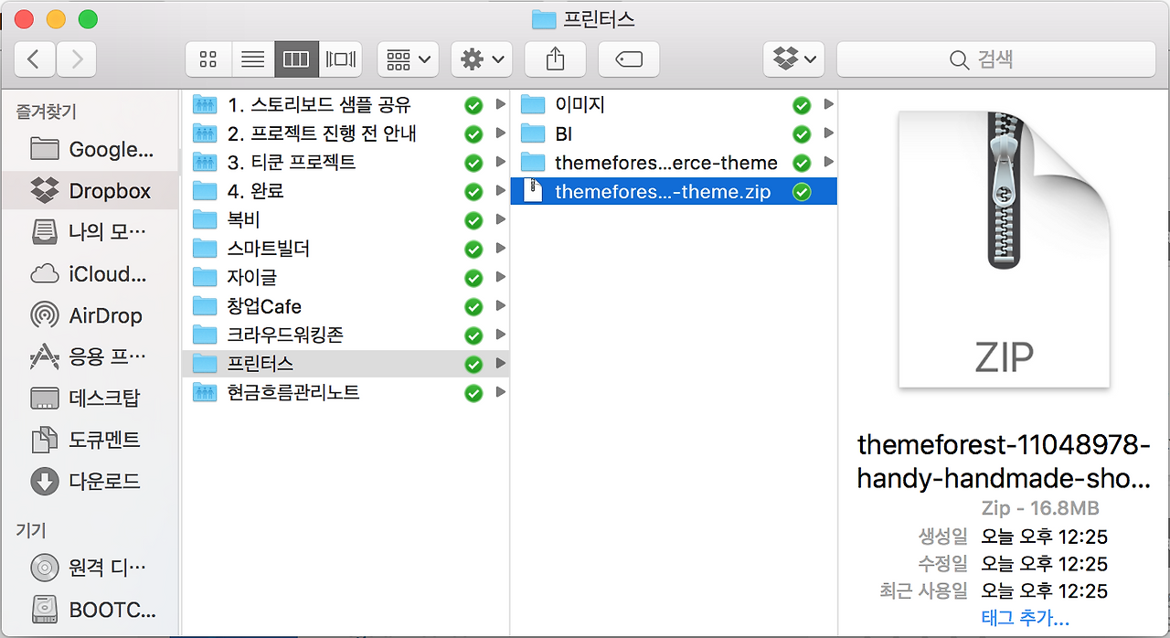 압축파일을 다운받았으면 워드프레스 설치와 함께 테마설치를 하기 위해 필요하니 잘 준비해 둡니다.